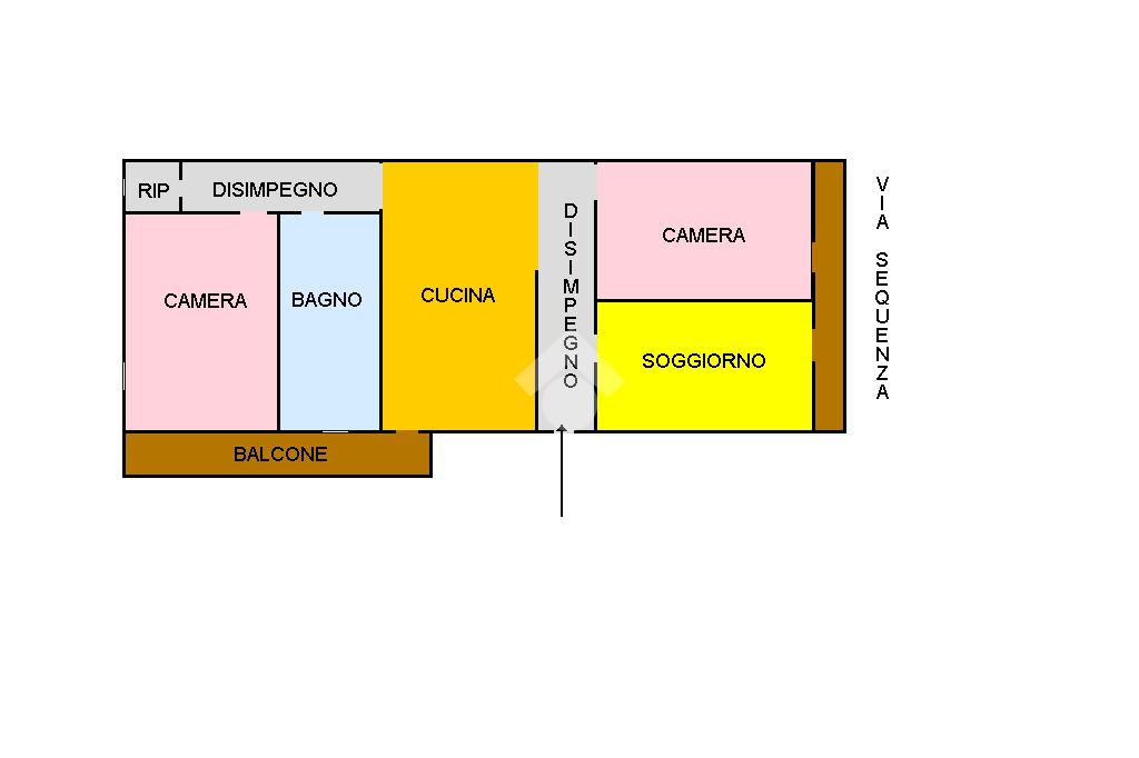 L'immobile al suo interno è composto da: ingresso su disimpegno, soggiorno, due camere da letto, cucina abitabile, bagno, ripostiglio con finestra e due balconi di cui uno su prospetto principale.