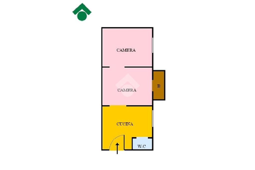 L'immobile è cosi composto: Ingresso, cucina , piccolo bagno con doccia, cameretta con balcone su prospetto principale e camera da letto con finestra.