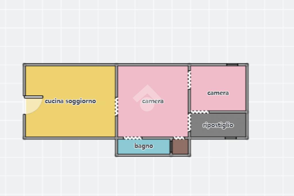 L'immobile è cosi composto: ingresso su cucina soggiorno con angolo cottura in muratura, camera da letto, cameretta con finestra, ripostiglio finestrato, bagno con doccia e piccolo pozzo luce.